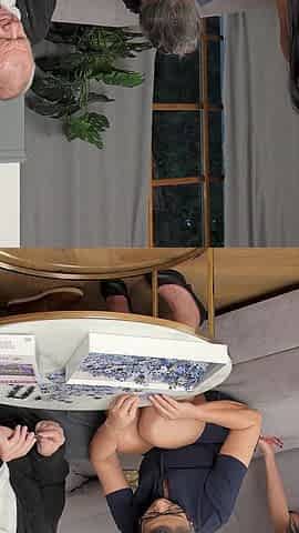 Father in Law's Gigantic Dick Hangs Out Under His Sarom for Step Daughter