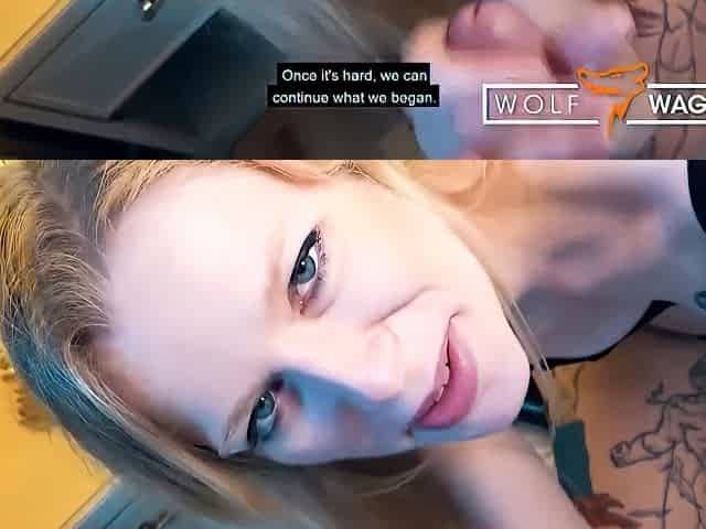 Blonde Jess Cromwell sucks dick and gets cum in her mouth pov