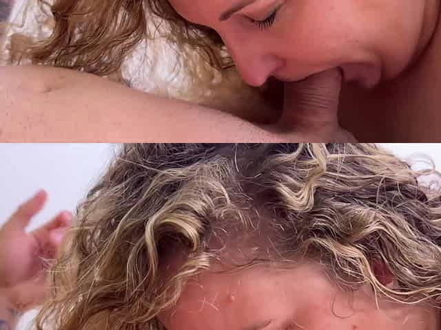 Long Hair Blonde Sucks My Cock While I Do The Job - Cum In Mouth