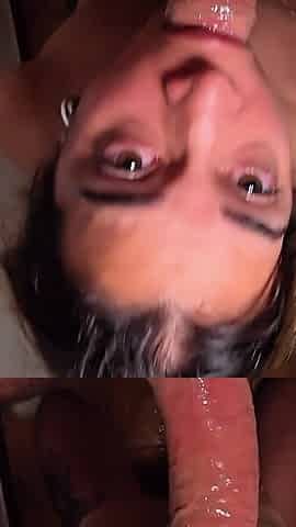 Hot amateur blonde from sorority gives her first intense facefuck and throat pie
