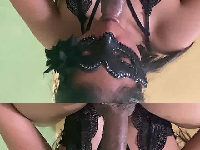 The mother i'd like to fuck in a latex costume sucks penis with cum in her throat