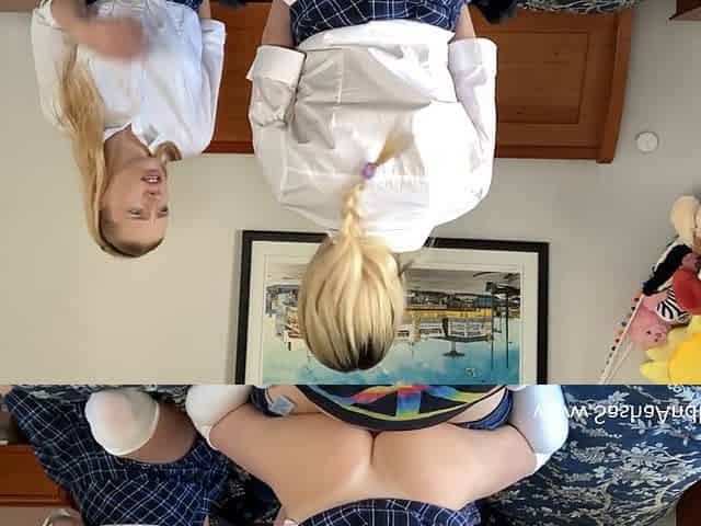 Eighteen-year-old schoolgirl Sashaandbaby takes a creamy load in reverse cowgirl