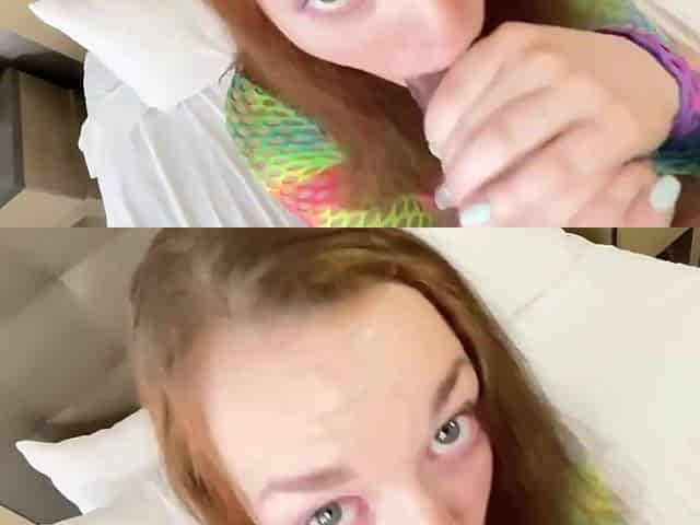 Redhead sloppy blow job with POV cum in throat