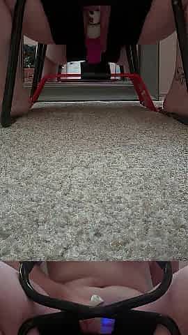 Bouncing big ass in thigh-high socks while riding a thrusting dildo