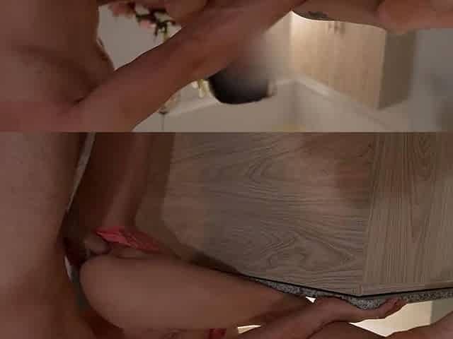 Kitchen hookup with hot brunette students Oliviaandoliver
