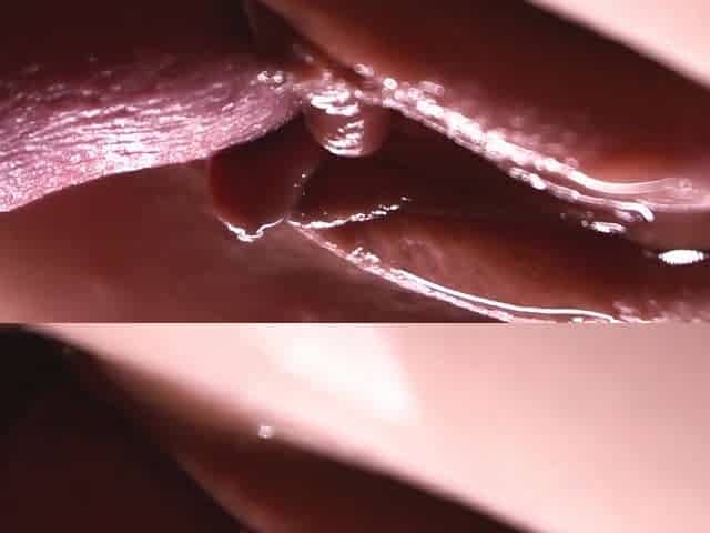 SLOW MOTION. Incredibly close-up. Goo trickling down the snatch