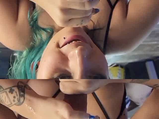 Perky tits, blue haired