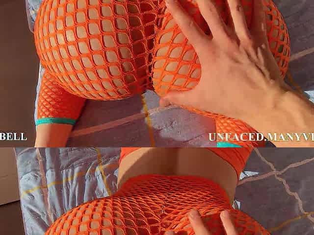 Soaked Blondie in Orange Grid Hard Screws after Masterful Blow Job and Gets Cum on Cunt