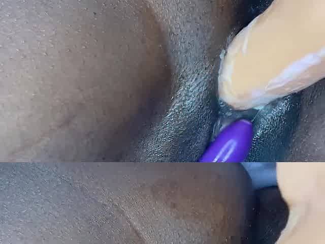 Amateur honey is toying her cunt during the time that her lover is cumming all over her booty