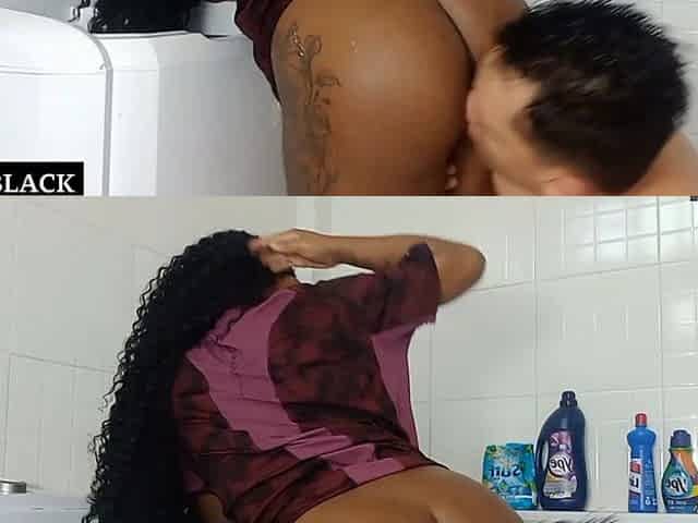 Unexpected sex in the laundry room, with different poses and cum inside the vagina.