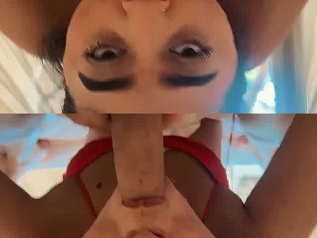 Pigtailed Brunette hair POV Oral job