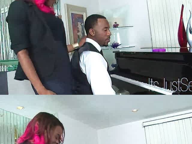 Show Girl ebony-skinned BBW busty fucks black cock to enjoy cum