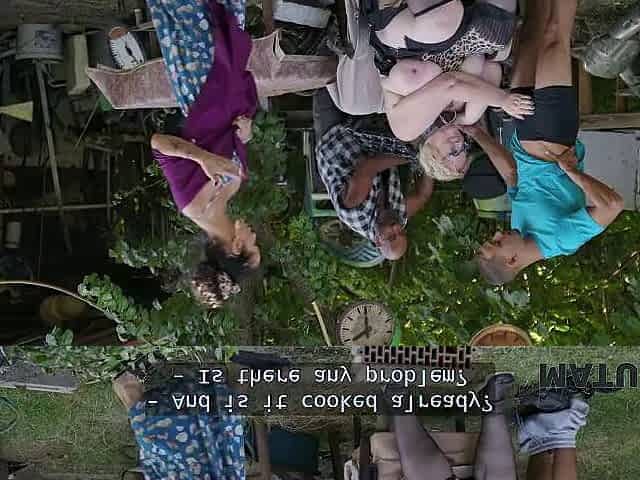 MATURE4K. Weird blonde Diana loves a lot of cum from 2 strangers on her huge tits