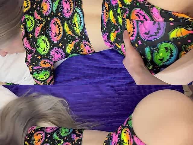 Stepbrother cum on my melons and me eat his load