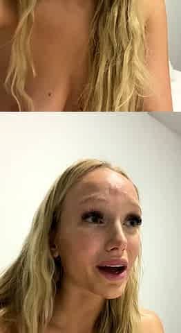 Cute blond squirted and took semen on her face