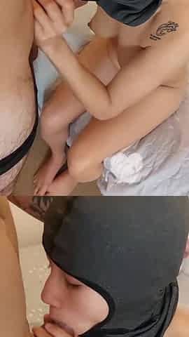Amateur oral sex in the shower - cum in throat