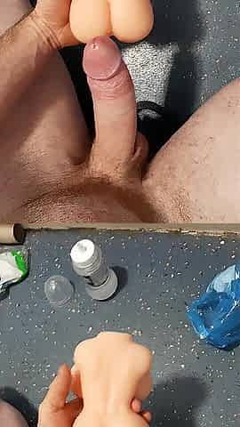 petite jock banging twat and cums on it
