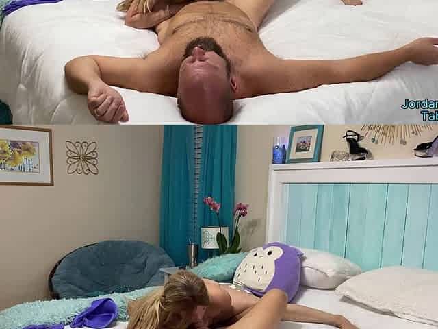 He cums on her big natural tits
