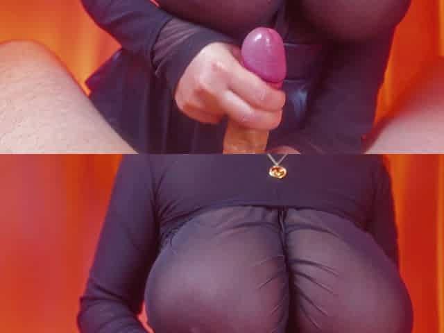 Bizarre titsjob with much cum all over hr enormous natural boobs