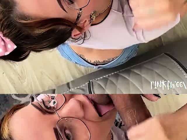 Babe In Choker Blowjob Big Cock And Cum In Mouth After Party