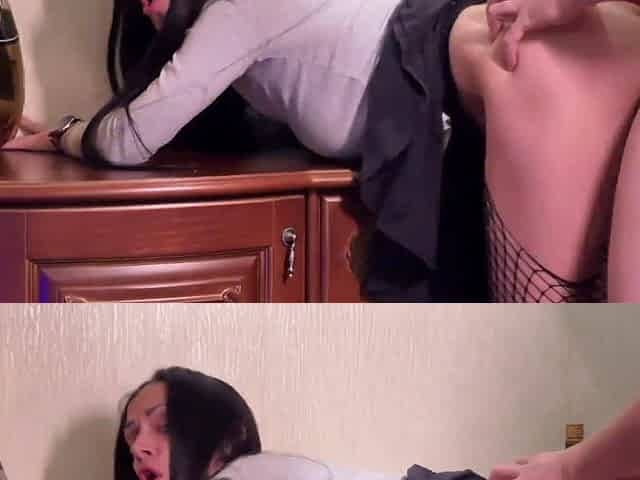 Stepmom was preparing for the New Year party. Stepson tore his pantyhose and filled the pussy full of cum