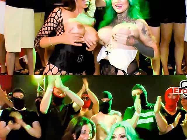 Sperm Party in German Sex Club with 2 Women