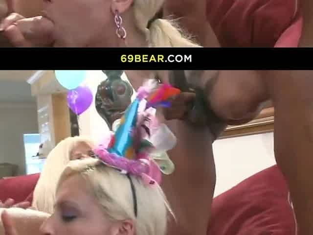 Holly, Kylie & Sienna have a wild time getting fucked hard in the face by horny friends in birthday party orgy