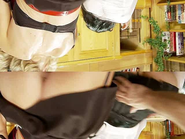 Blond babes with great ass get their juicy pink pussy fucked on couch