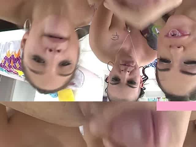 Double facial after three-some with two breathtaking sexy chicks