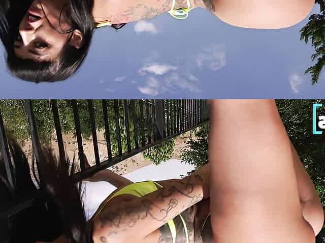 Rough outdoor dicking by the pool ends with Suttin getting a cumshot