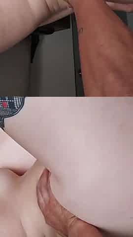 Cuckold Creampie Cleanup, Wife Fucks Neighbor in Front of Husband