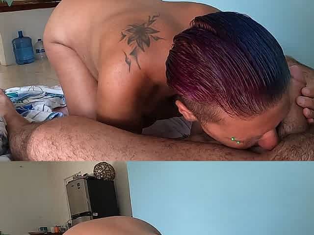 Yummy breakfast oral-job, cumkiss with cum swapping