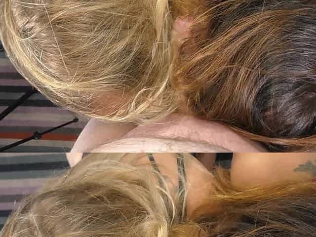 Two Busty Blonde Strippers Share Huge Cock And Cumswap
