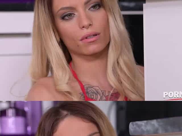Anna Kolba and Lucia Rossi shared a load through a gloryhole.