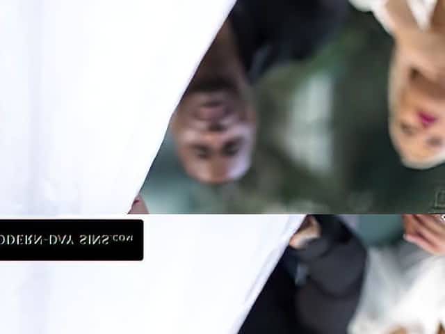 Horny bride Cate Harrington enjoys dick sucking and pussy pounding with tow guys in this hardcore threesome scene