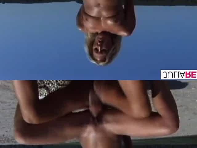 Bitch sucks a big cock then gets fucked hard on the beach