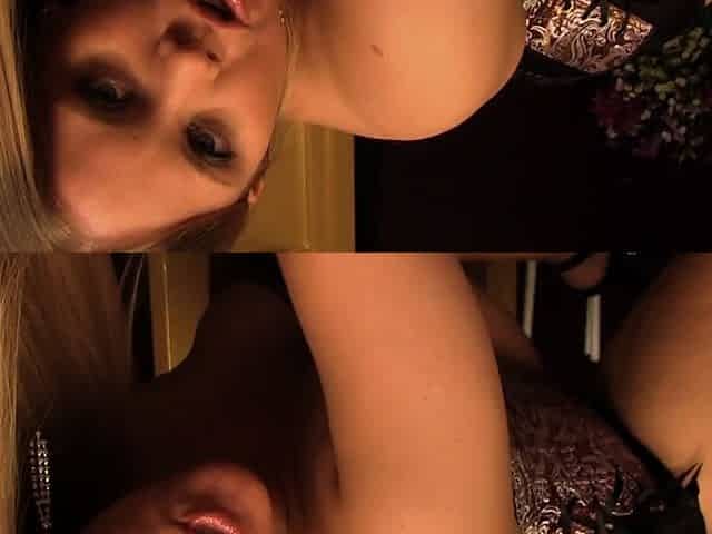 Close up with blonde hottie blowing a large dick