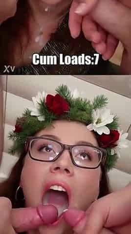 Glasses honey likes cum in her throat