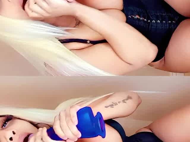 Charming blue eyed golden-haired Widens her Taut Twat Wide Open