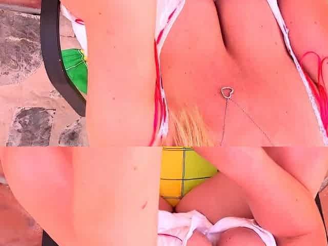 Blonde Chikita shows off her big boobs and bush