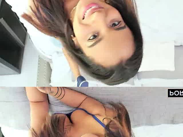 Una latin babe curvilínea en tanga de hilo me tienta con su enorme y esponjoso trasero