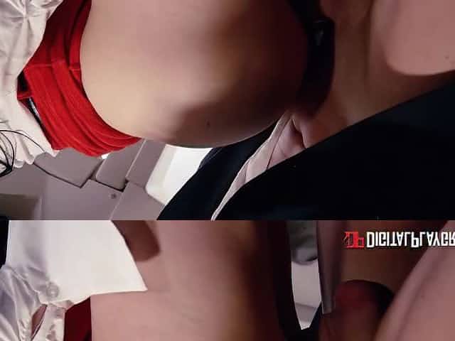Chesty cutie riding a hard shaft on the floor