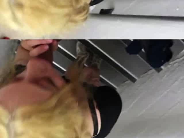Blonde Escort Gives Blowjob on Stairs