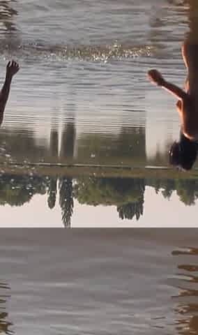 A beautiful busty brunette invites her boyfriend to fuck in the lake.