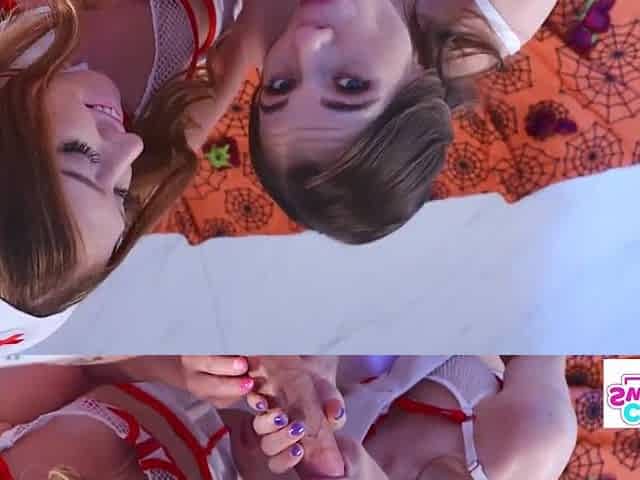 Nasty Nurses Myra Groans & Rose Carter Tell Stepbro "Get Out and We'll Suck That Large Ramrod"