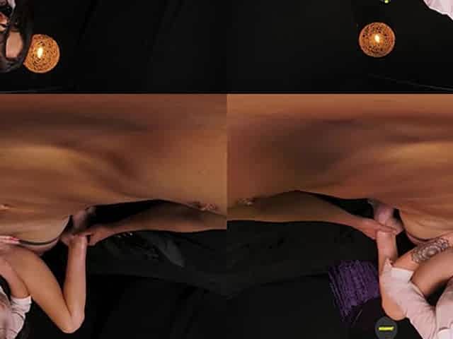 Préliminaires torrides avec un pair, massage à l'huile sur le corps. Léchage de la chatte de la fe