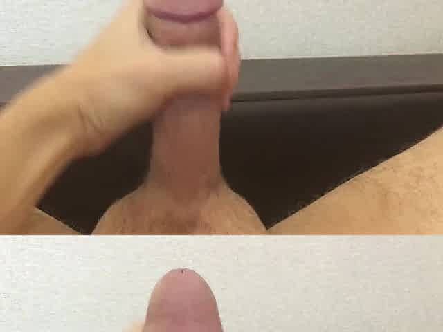 Thick cum flows down the circumcised schlong