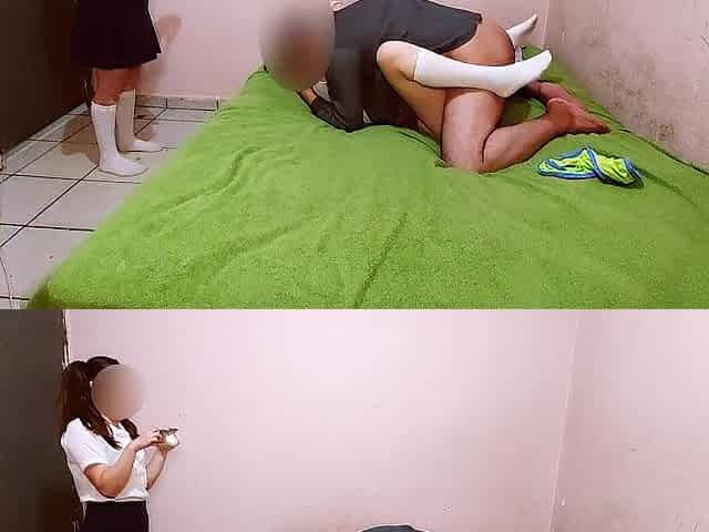 Oh no! Teen colegiala llega de la escuela y descubre a su mejor amiga con su padrastro