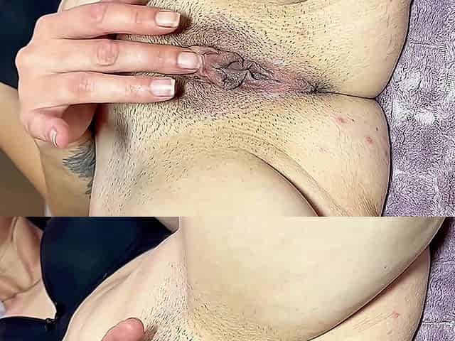 This extraordinary amateur wench opens her hairless pink vagina and takes triple penetration with pleasure