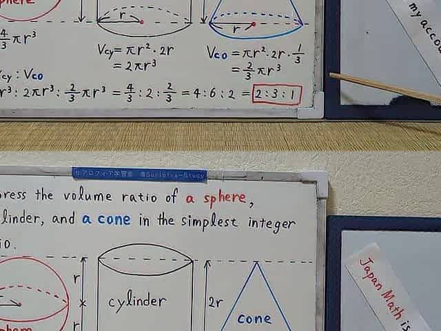 The volume ratio of a sphere, a cylinder, and a cone in the simplest integer ratio. [JapanMath]